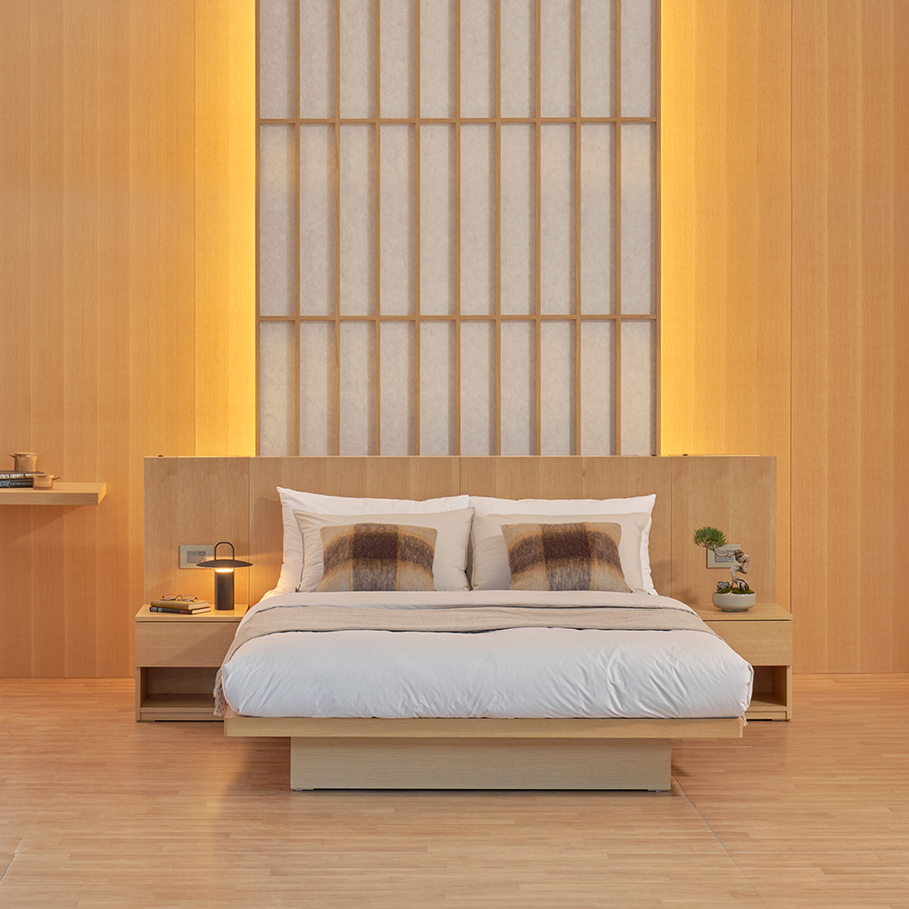 BS ON - 한국갤러리 로쿠 침대 세트 K (침대프레임+시그니처 매트리스+일반형 협탁 2개)